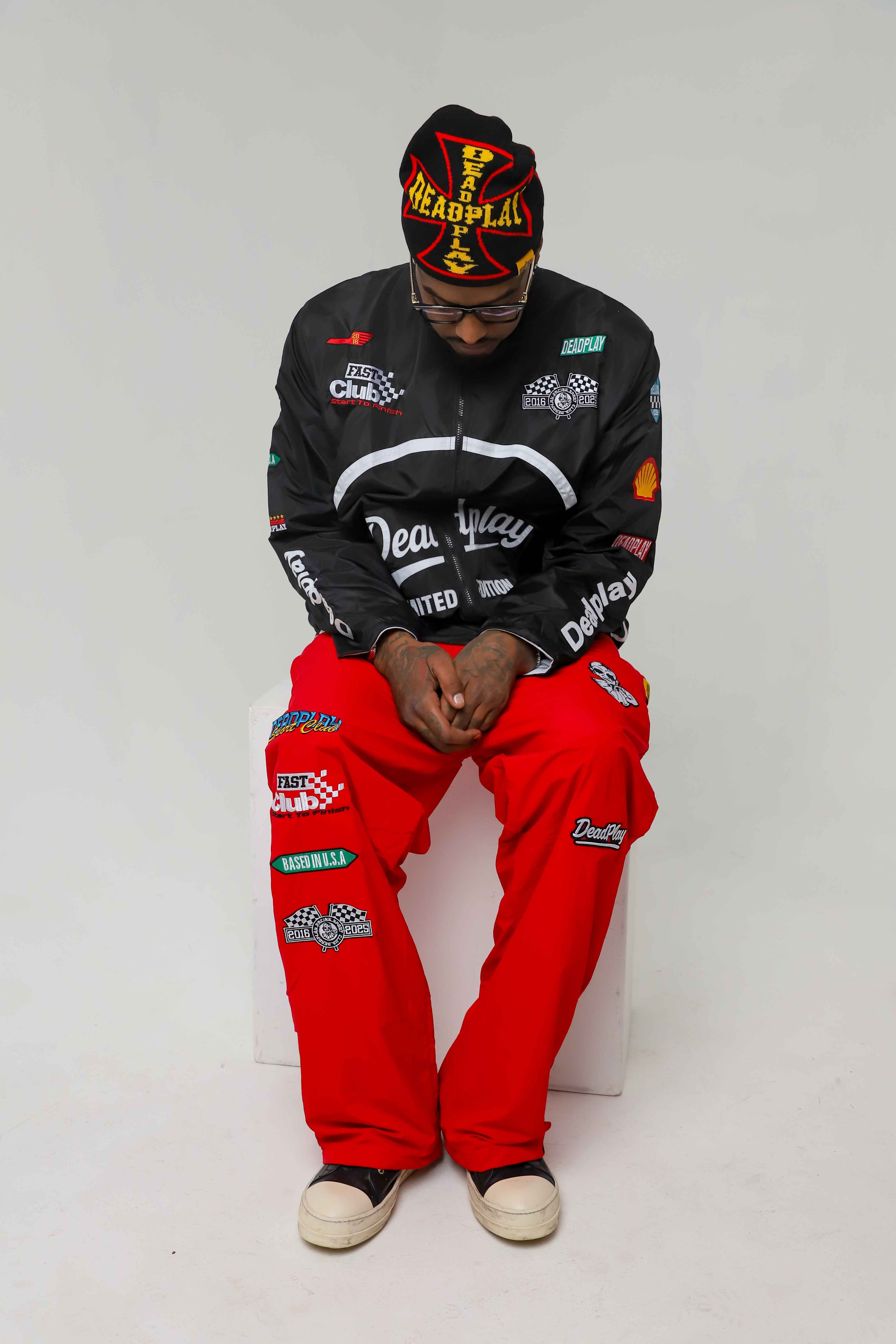 RED WINDBREAKER OVERSIZED PANTS